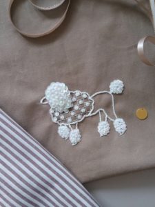 プードルの刺繍をしてみました。スパンコールがキラキラしていて華やかに仕上げています。